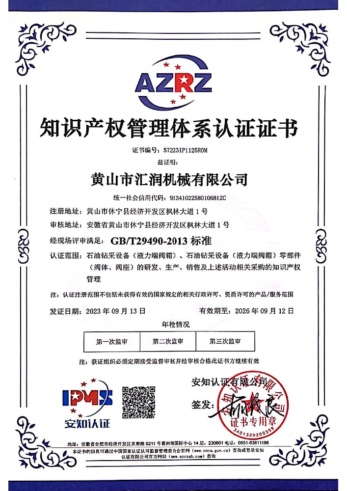 知识产权管理体系认证证书中文